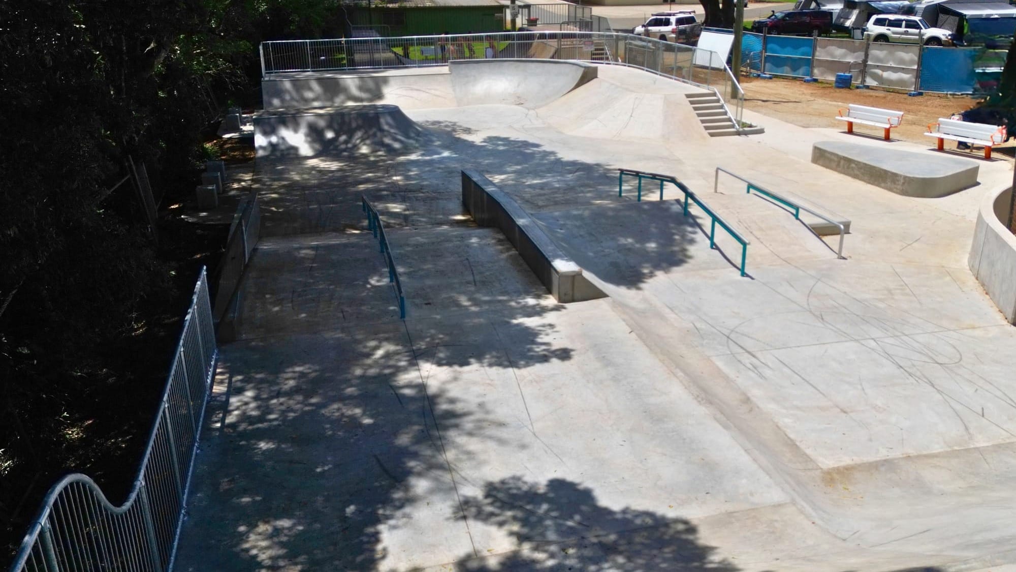 The project features a suite of new infrastructure, including flat banks, hips, transition ramps, ledges, and rails. To maintain the park’s heritage while improving its flow, the council integrated the previously existing half-pipe into the new concrete design. Beyond the riding surfaces, the upgrade adds fresh landscaping and seating areas, transforming the space into a family-friendly destination for both participants and spectators.